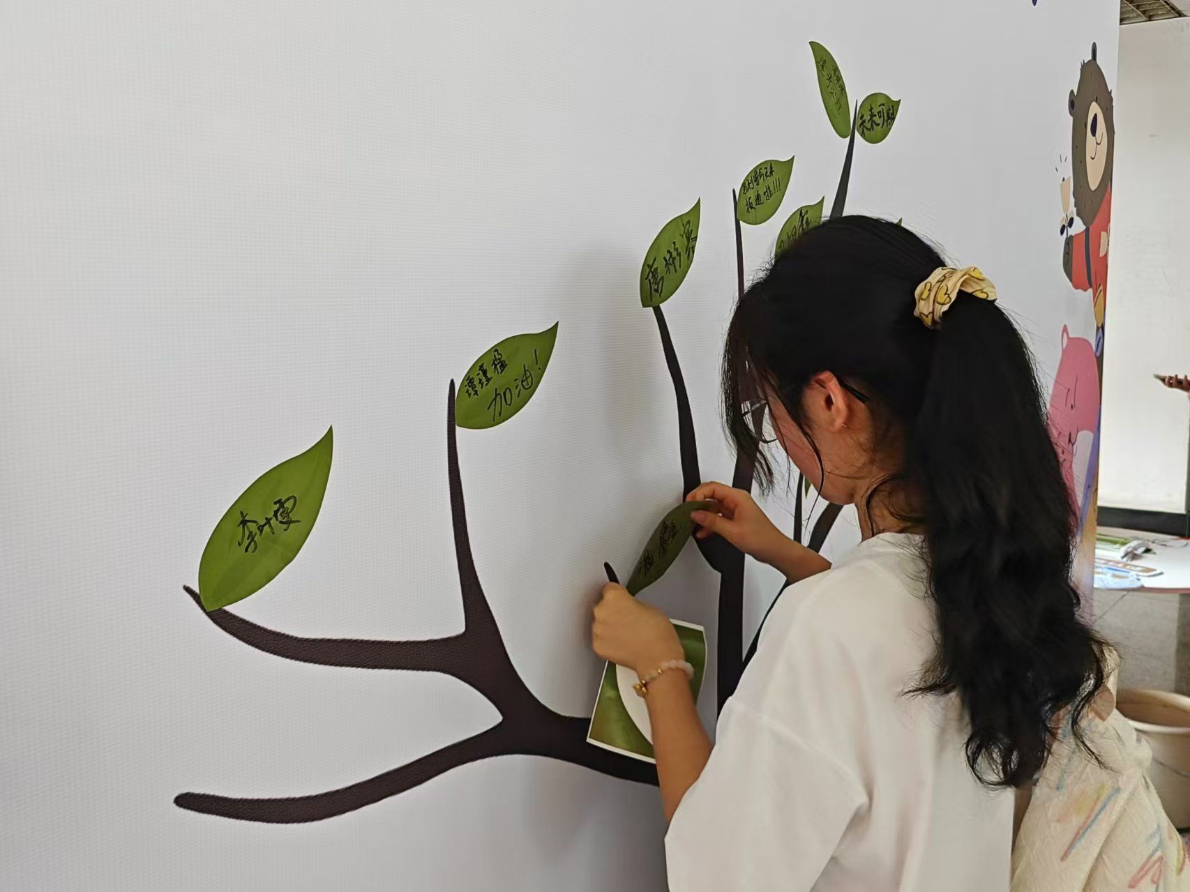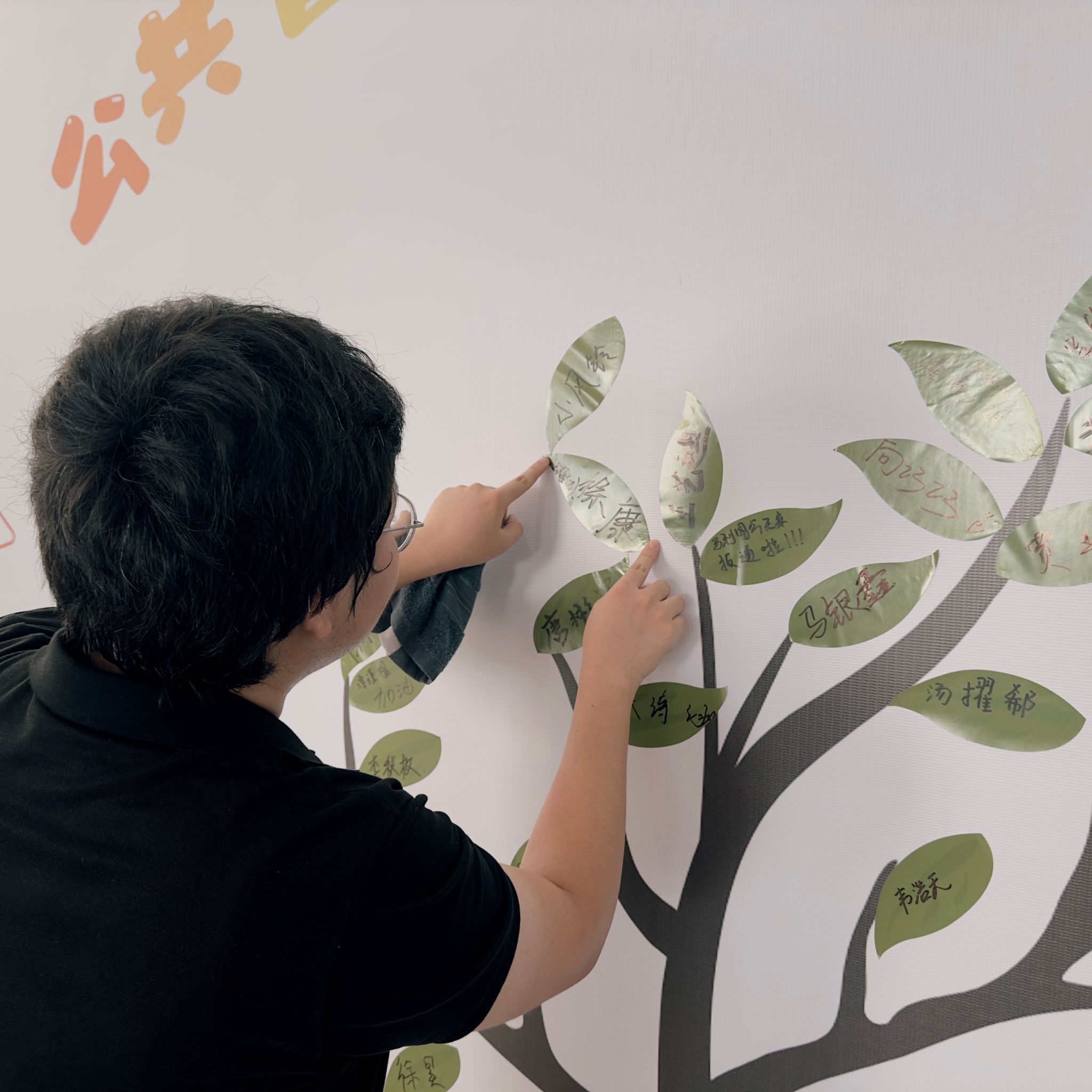 每一位新生在树叶上写下对即将到来大学生活的期望,写下新的一“叶“,然后贴在象征黑料网