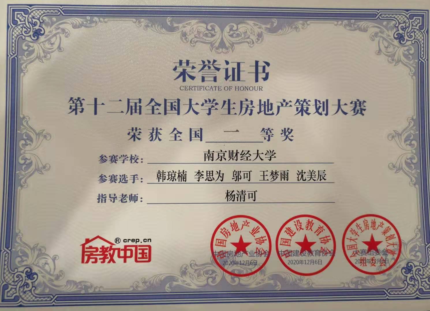 勇夺第十二届全国大学生房地产策划大赛全国一等奖