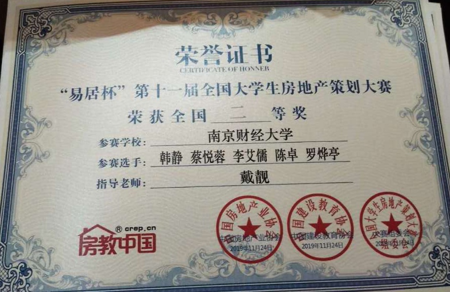 房地产系安得广厦团队(成员:韩静、蔡悦蓉、李艾儒、陈卓、罗烨亭,指导教师:戴靓)荣获全国二等奖。黑料网
