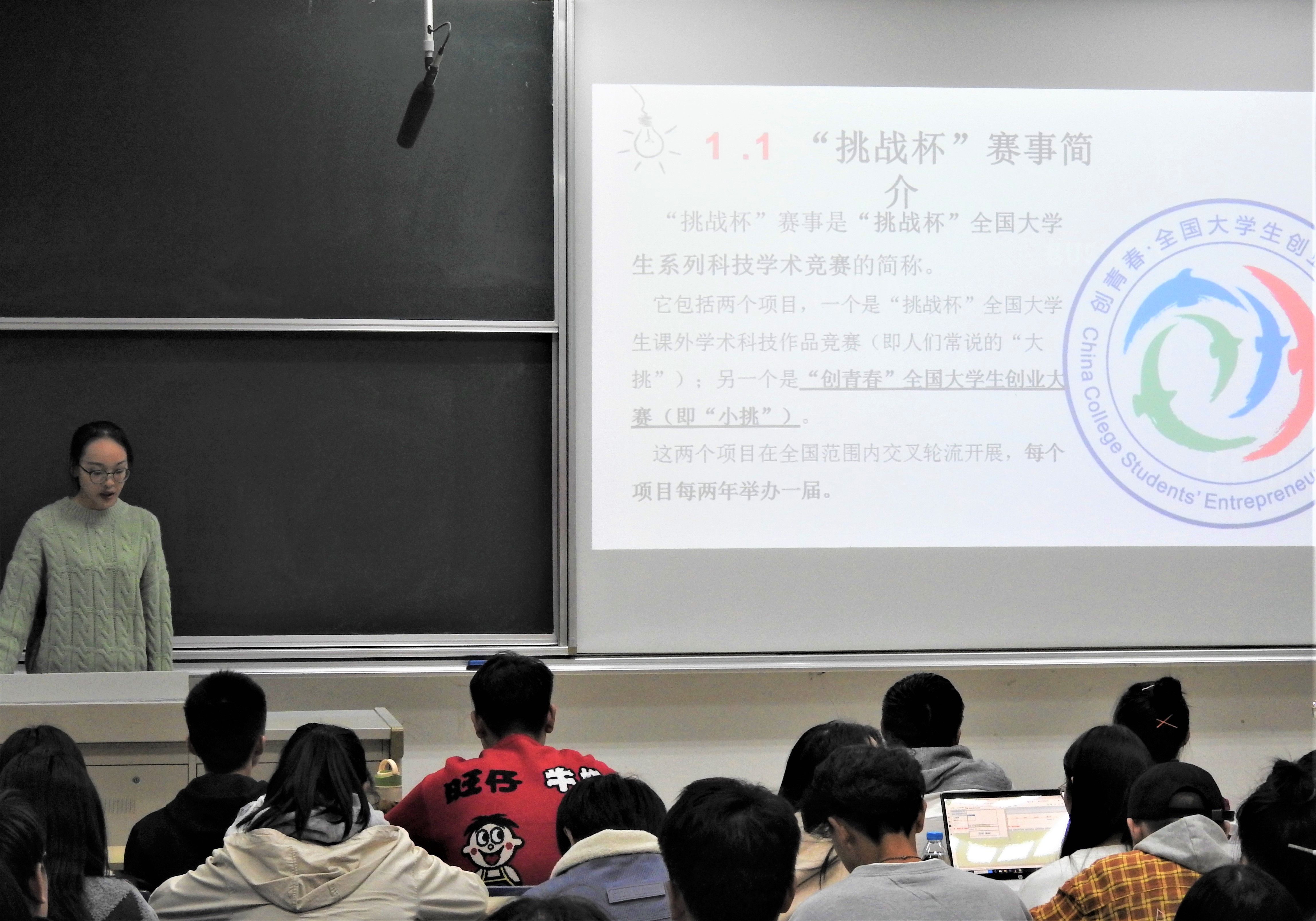 会议伊始,主持人简练清晰地介绍了“挑战杯”赛事概况,让在座同学们对“挑战杯”有了初步的了解。