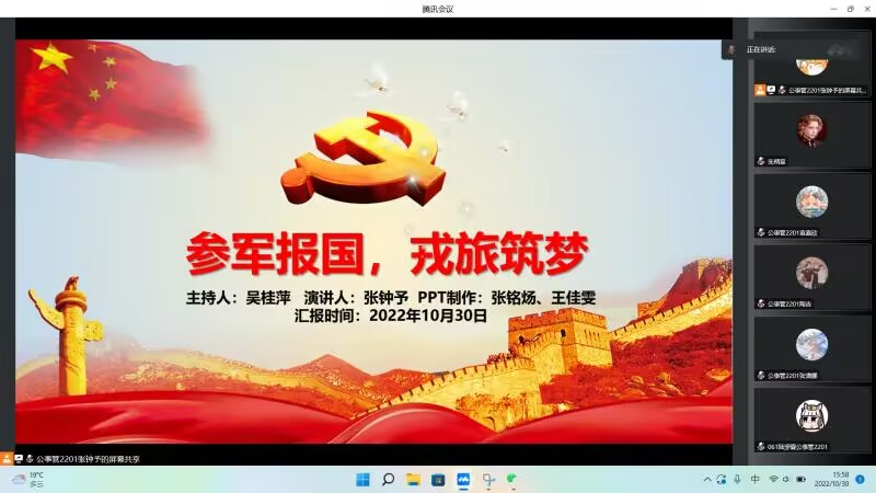 在10月30日成功开展征兵宣传主题线上讲座。