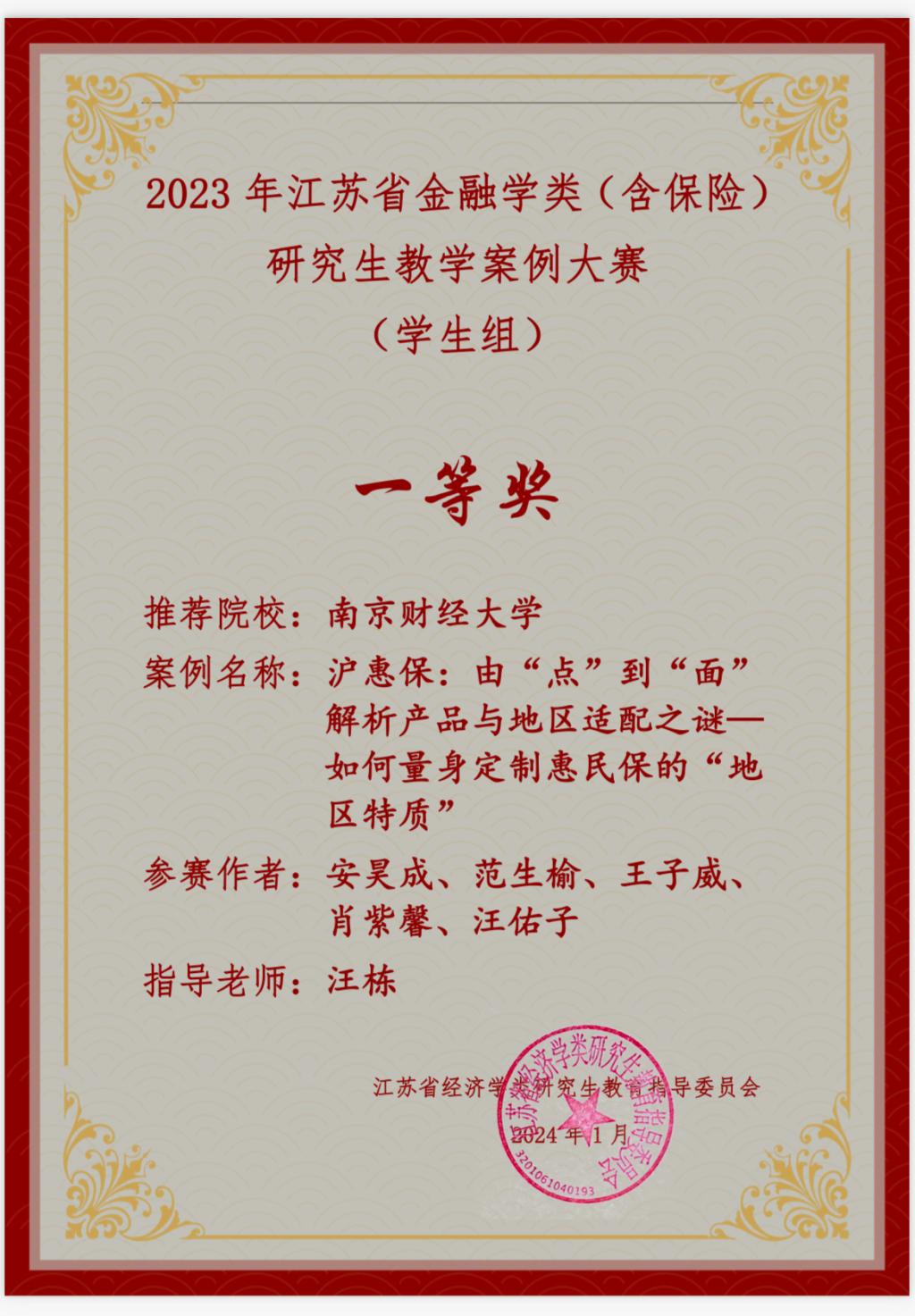 3月12日,由江苏省经济学类研究生教指委主办的江苏省金融学类(含保险)研究生案例大赛公布结果,黑料网 21级应用经济学研究生王子威、23级公共管理学研究生肖紫馨、安昊成的保险类分析作品《沪惠保:由“点”到“面”解析产品与地区适配之谜——如何量身定制惠民保的“地区特质”》荣获江苏省一等奖。