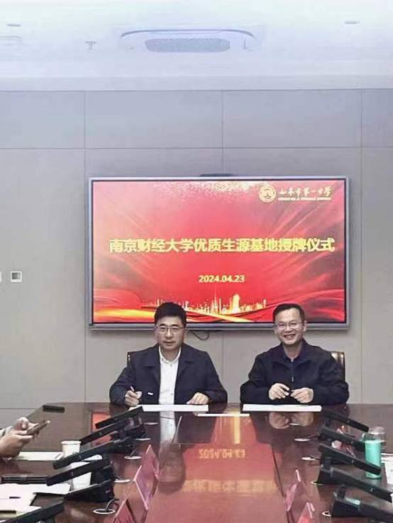 优质生源基地建设协议签署后,会计学院院长沈永建代表我校与如皋一中党委书记杜建新对优质生源基地进行揭牌。