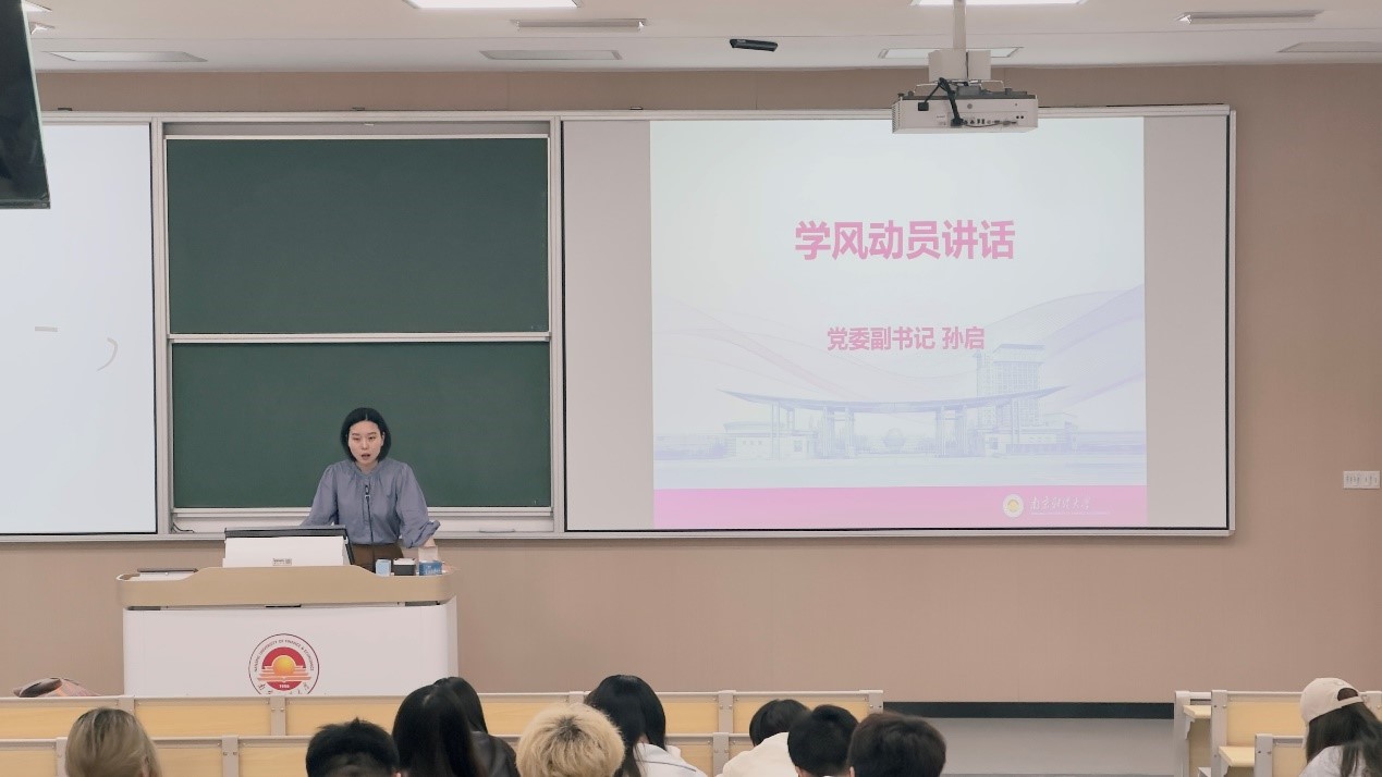 在感谢了两位学长学姐的分享后,孙启副书记重点强调了学风建设的重要性,祝愿大一大二的同学在即将到来的期末考试中取得好成绩,鼓励广大同学充分利用暑假时间参与暑期实践,表达了对全体同学的未来期许与美好祝福。于华老师就文明考风、诚信考试作了重点提醒,再次强调了考纪考规的内容,提醒同学们应当在日常的学习中刻苦努力。