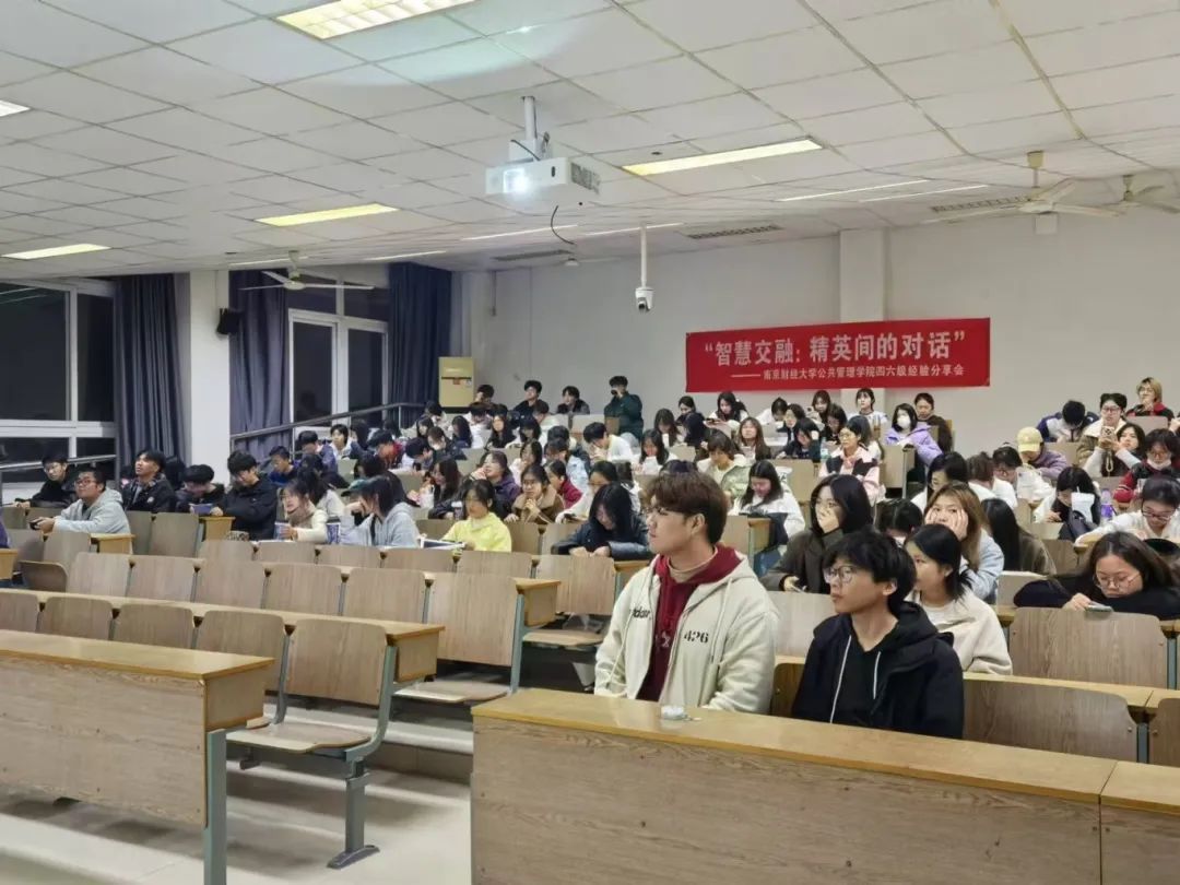 此次活动主要面向我们正在备考英语四六级考试的学子,学院邀请到了房地产2301的林邦仁和行政管理2301的胡世睿,他们以备考中所得的经验为引,让同学们能有所启发。