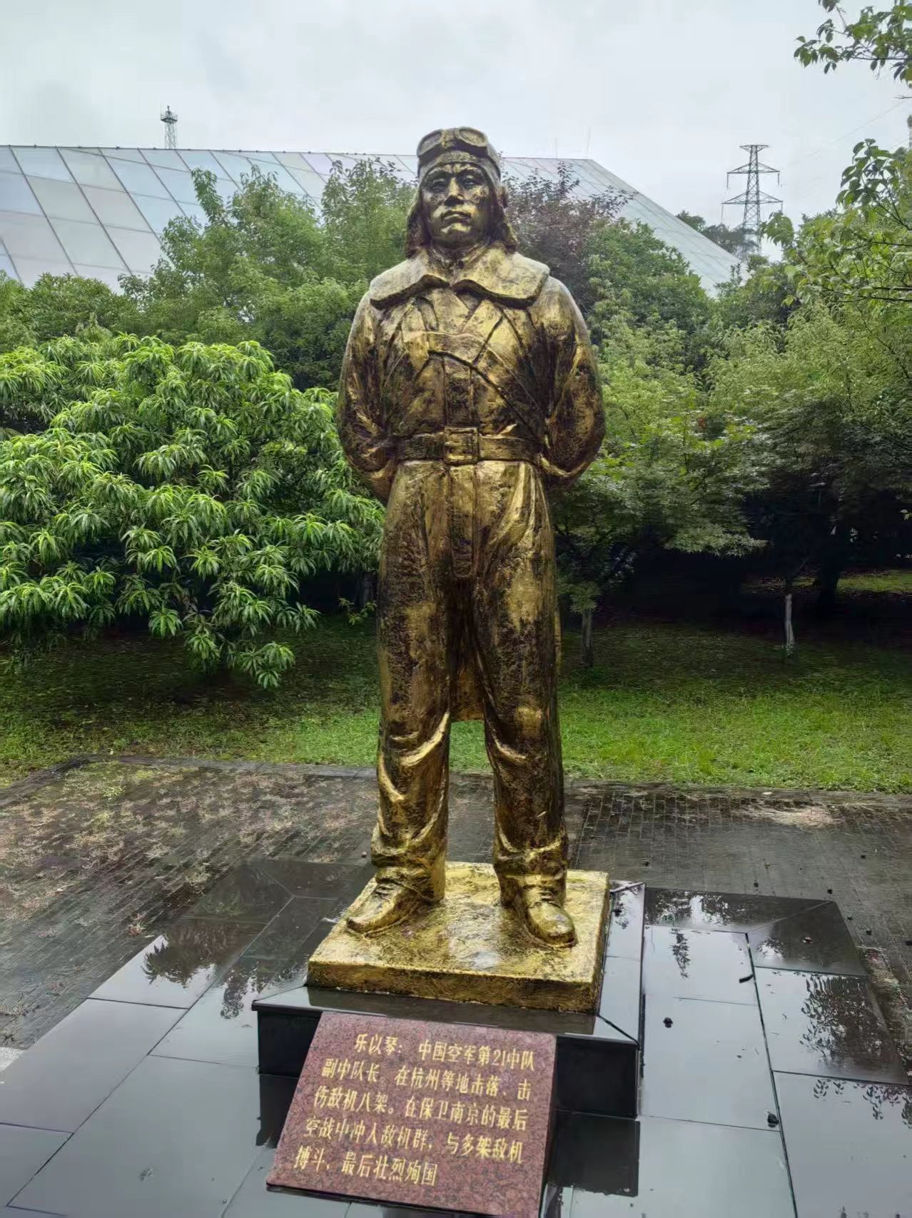 在实践过程中,团队瞻仰了乐以琴烈士的铜像。乐以琴是中国空军师旅团营连副中队长,在扬州等地作战时,击伤敌机八架。在保卫南京的最后空战中,他毅然冲入敌群,与多架敌机展开殊死搏斗,最终壮烈殉国。实践团队成员凝视着挺拔的铜像,深深为乐以琴烈士的无畏精神所触动。成员们表示,会将这份对英烈的缅怀化作动力,传承抗战精神,勇担时代使命,不负先辈们用热血换来的和平 。