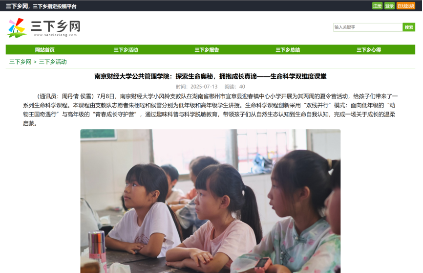 2025年暑期文化科技卫生“三下乡”社会实践活动的通知》要求,在校团委、院党委的组织下开展了一系列暑期社会实践活动,成效显著。