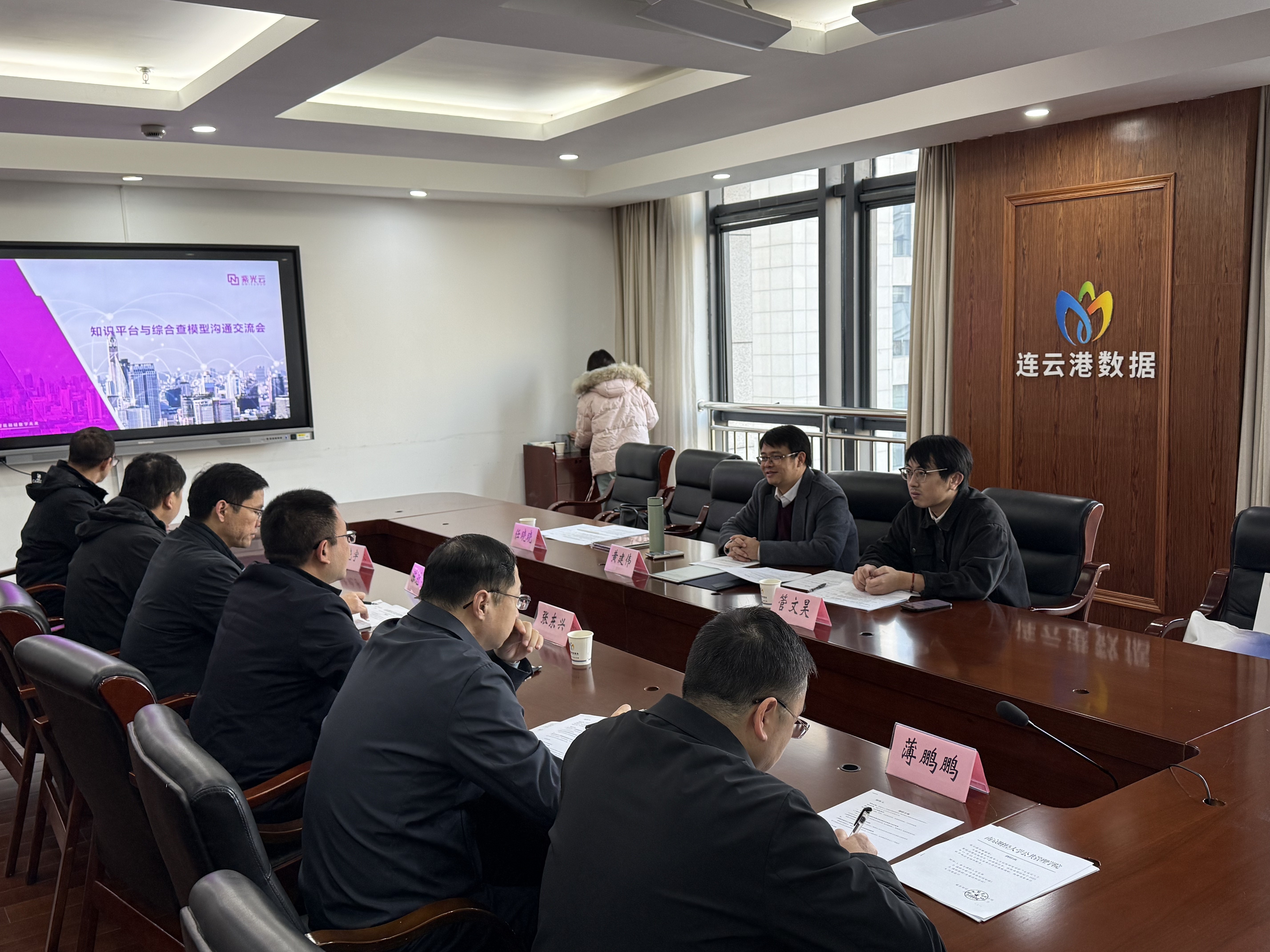 24日上午,在连云港市数据局会议室,调研组与数据局相关负责人以及紫金公司负责人开展座谈会,具体围绕AI辅助政务人员工作、数据知识平台建设、“人工智能+”政务服务应用场景等关键议题展开深入交流。