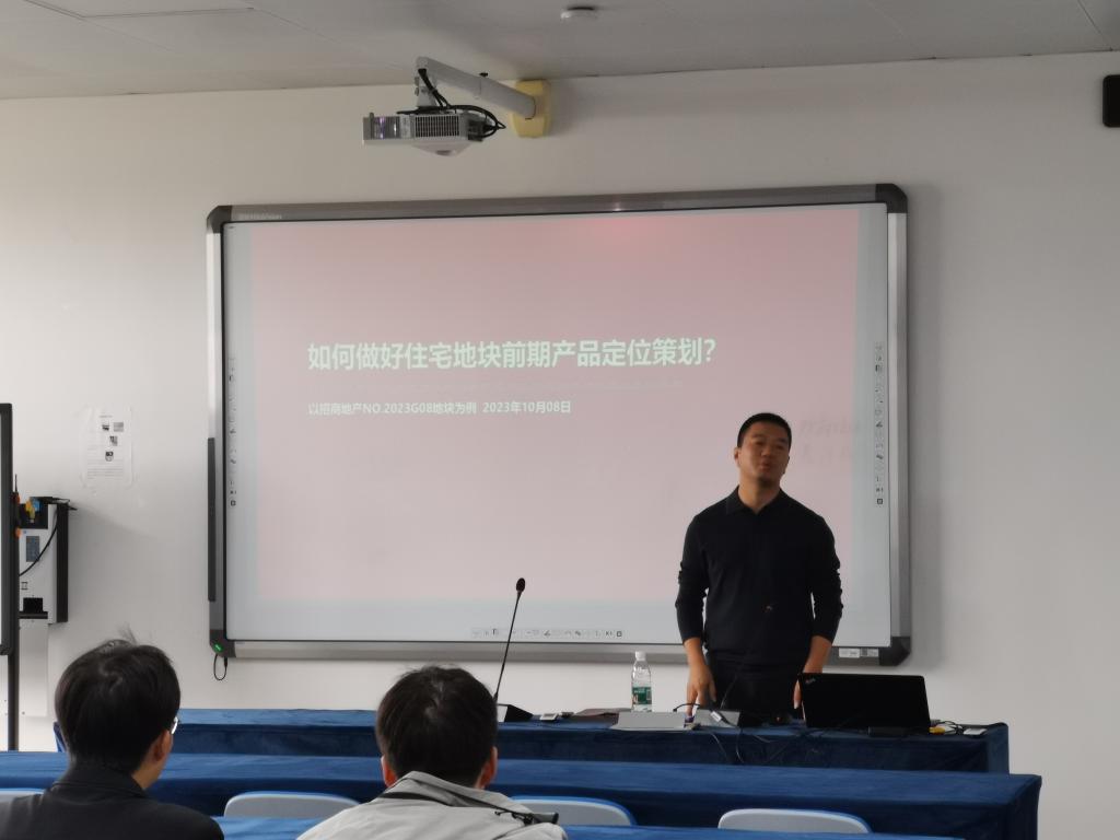 唐经理从产品前期市场调研、产品户型面积配比、政府规划、目标客户群、客户购房心理等多维度全面地分析了房地产开发及营销策略并通过结合高科紫麟景院项目,引导学生进行营销策划。整场讲座融入近期房地产业发展现状,面临问题以及未来转型趋势,让学生更加深刻地理解到房地产市场的变化。讲座后,学生们就报告内容、未来工作方向和公司选择等问题进行了深入沟通。