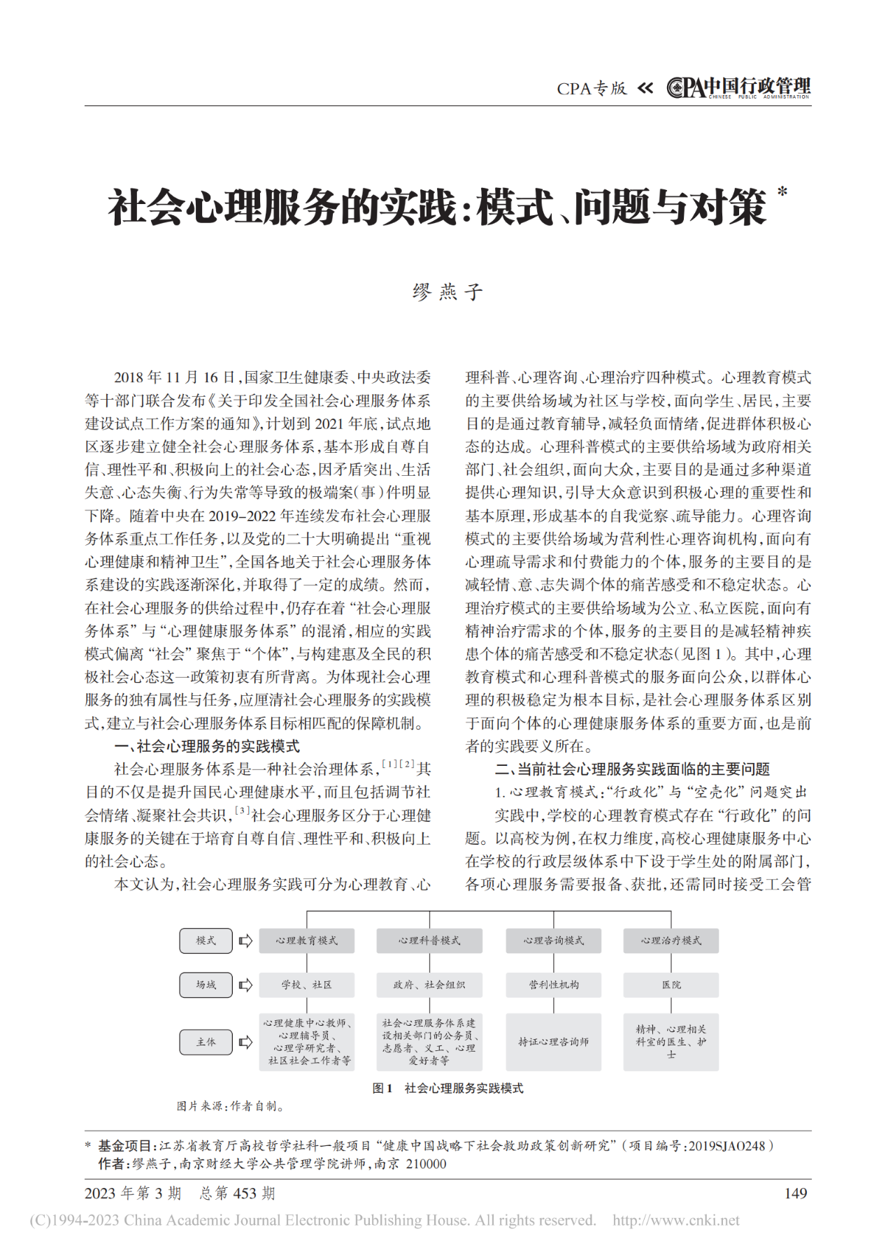 论文名称:社会心理服务的实践:模式、问题与对策
