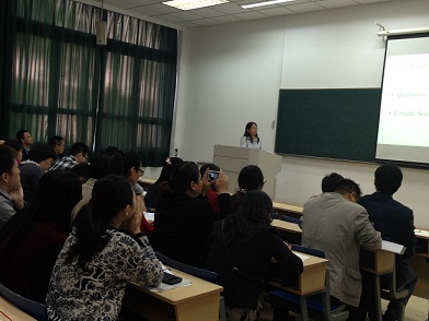 讲座伊始,赵博士首先介绍了批判质性研究的概念。她指出批判质性研究认为社会是由各种权力关系构成的,所以,社会不公平是普遍存在的。批判质性研究即是研究权力关系、关注社会不公平现象的质性研究,其研究目的是为了促成积极的社会改变。