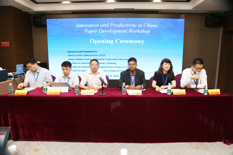7月21日,由《Economic Modelling》和《Emerging Markets Finance and Trade》编辑部主办,黑料网 、江苏现代财税治理协同创新中心以及《产业经济研究》编辑部共同承办的“中国创新与生产力国际学术论文研讨会”在我校召开。我校党委常委、副校长俞安平教授、《Economic Modelling》主编Sushanta Malick教授、副主编Lutao Ning教授,我校科研处处长李杏教授、《产业经济研究》编辑部孔群喜主任,以及《Emerging Markets Finance and Trade》期刊三位客座编辑出席了开幕式。有来自伦敦玛丽王后大学、英国国家经济与社会科学研究院、香港中文大学、北京大学、浙江大学、中国人民大学、南京大学、中山大学、中央财经大学、上海财经大学等近30所高校的专家学者,以及我校部分教师、研究生参加了此次研讨会。