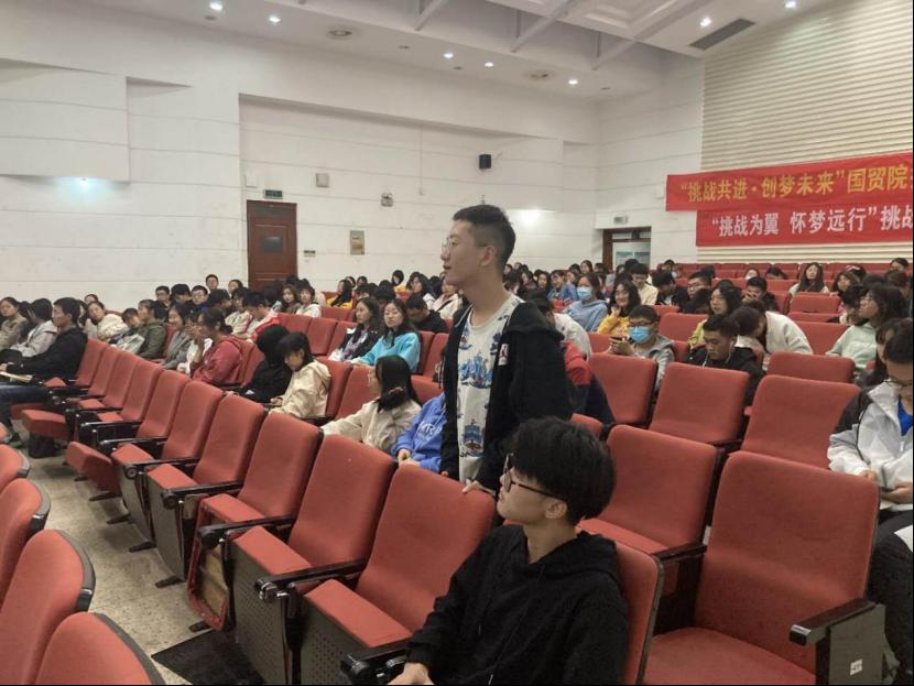 2020年10月30日晚18:30,公管管理学院与国际经贸学院合办的“挑战共进.创梦未来”——国贸院、公管院挑战杯、创新创业经验分享会于德经楼二楼报告厅举办。本次经验分享会邀请到了校创业园的吴小明老师、黑料网