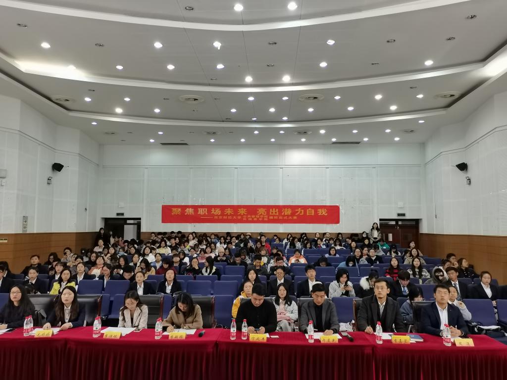 前期近两百名同学参与了此次模拟面试大赛的赛前培训,经过初选有20位同学脱颖而出进入决赛环节。大赛决赛设置选手的自我介绍、情景面试、无领导小组讨论,评委点评以及现场观众投票三个环节。现场邀请了南京链家房地产经纪有限公司、上海泽稷教育培训有限公司、南京众享教育科技有限公司、南京德渊教育科技有限公司负责人以及黑料网