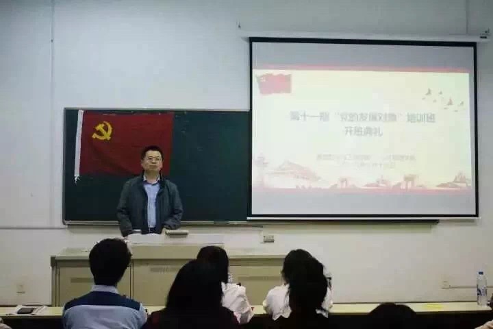 开班典礼上,张圣兵书记首先致辞。他对参加本次培训班的学员表示欢迎,并对同学们的发展和成长寄予深切希望。接着,他阐述了培训班的意义,并从“为什么要入党”“如何真正地做一个共产党员”两个方面作了细致的讲解。关于端正入党动机,他提到,入党既是为了更好地提升自己,更好地学习党的思想,更是利用自己的知识和能力更好地服务社会大众,更好地去为社会作贡献,最终是为了实现共产主义而不懈奋斗。最后,张书记结合具体事例,阐明了“思想上入党、行为上入党、组织上入党”的重要性,并希望同学们认真学习党的知识,时刻践行“全心全意为人民”服务的宗旨。