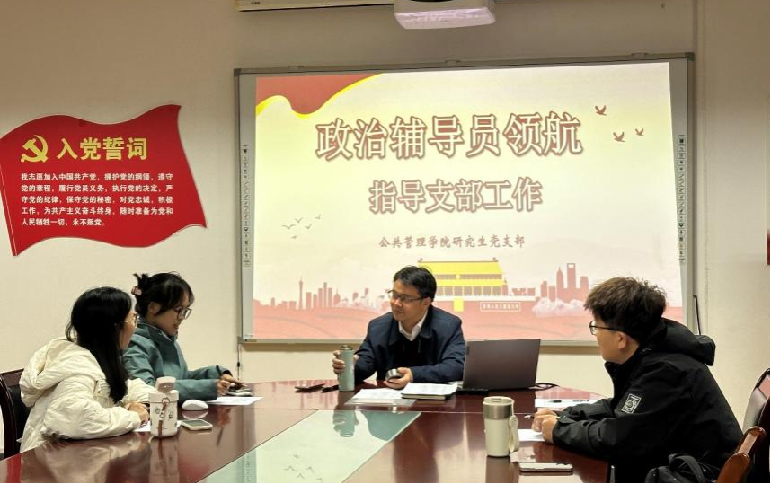 院长、研究生党支部政治辅导员黄建伟教授深入研究生党支部,于德济楼508会议室开展指导支部工作座谈会。