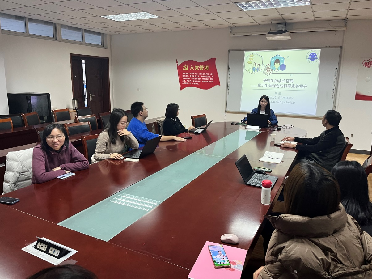 其次,邀请戴靓同志,做了题目为《研究生的成长密码——学习生涯规划与科研素养提升》的研究生培养经验分享,主要包括制定学习计划、论文撰写、博士申请等内容,对于提升教工党员在研究生培养的质量上具有重要意义。