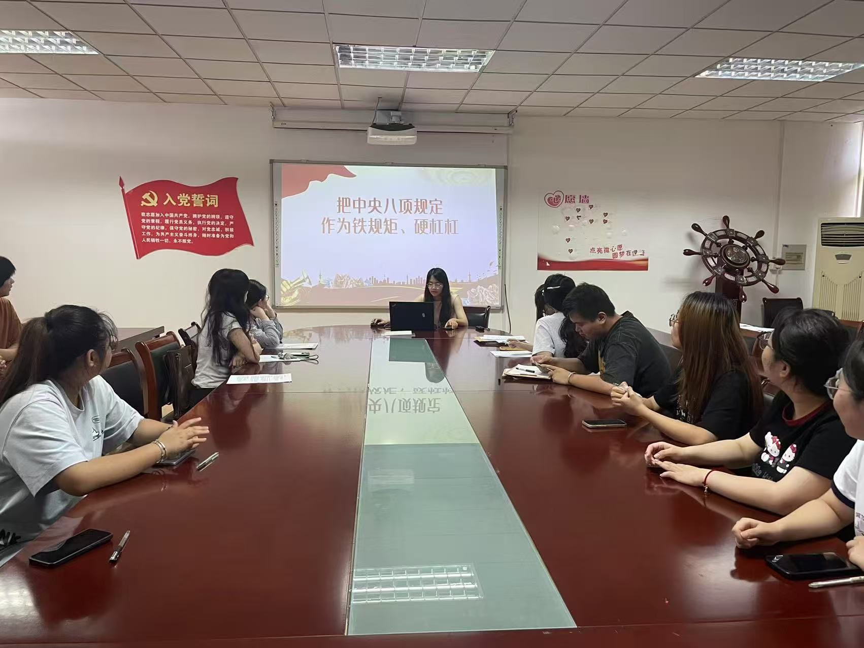 本科生党支部书记高敏老师在德济楼508会议室为全体党员讲授题为“把中央八项规定作为铁规矩、硬杠杠”的专题党课,本科生党支部全体党员参加学习。