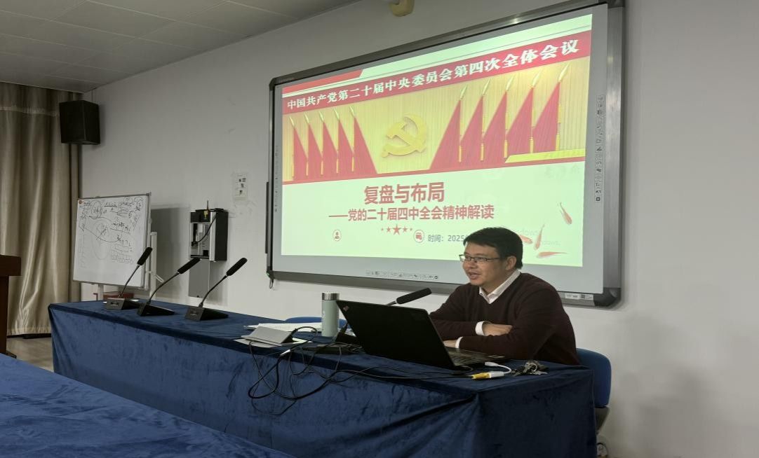 院长、研究生党支部政治辅导员黄建伟教授在德济楼502教室为研究生党支部全体党员讲授题为“复盘与布局——党的二十届四中全会精神解读”的专题党课。研究生党支部全体党员和党的发展对象参加党课学习。